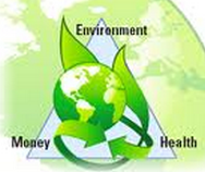 Ernest Callenbach developed a model called the green triangle. The three points of the triangle are: Money, Environment, and Health. When you do something that benefits one of the points on the triangle, it is generally beneficial for the other areas as well. For example, riding a bike costs less than operating a car; the exercise is a healthy choice and biking creates less pollution and congestion. You can use the model to think about other examples, like what we eat and what we buy.