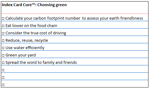 Green your yard: Composting your food and yard waste reduces the amount of garbage that you send to landfills. Choose native landscaping so less irrigation is needed.