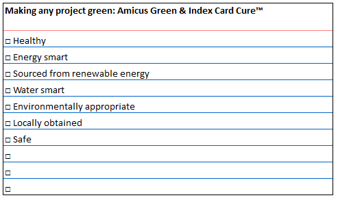 Simple, but not necessarily easy steps to make any project green from Amicus Green Building Center:
