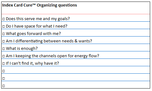 There’s a physical component to this. Where is clutter that needs releasing? The abundance we have access to can create blockages. How many times have you known that you own a tool needed for a project, but you aren’t sure where to find it? You search or buy another, frustrated by either choice. What purpose does it serve to have a stockpile of paper products, if it becomes a fire hazard? How convenient is having a jumbo jar of salsa that goes bad before getting used? I believe in the environmental mantra of reduce, reuse, recycle. If food in the frig turns into a science project, evaluate your meal preparation system. Even if you compost the moldy chili, there is still waste involved–soil is fed rather than people. Weekly menu planning based on inventory and scheduled commitments goes a long way to simplifying shopping, meal prep and limiting waste.