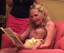 I got to read my first book to my granddaughter! And even I found it hard to believe that at a little over three months old, Eliza actually seemed to be paying attention. I didn’t have a good look at her eyes, but everyone watching said she was staring at the page and following my hand as I pointed to the pictures. I felt her concentration: her little body was still and focused as I read the words aloud.