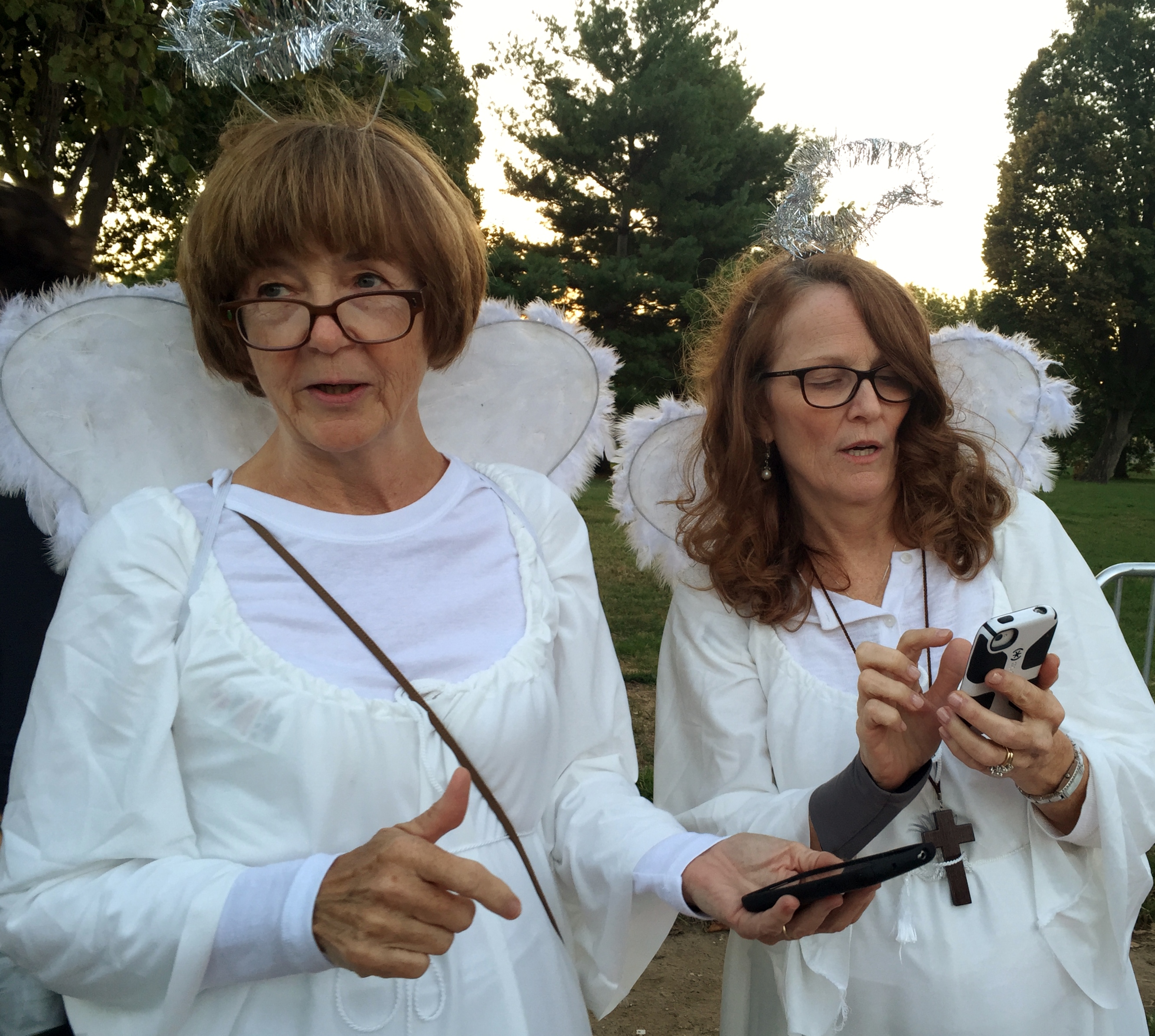 Ordeals may be part of the process–testing one’s commitment. Besides the early awakening and self-propelled travel, we encountered a 50 minute delayed opening of security, varying interpretations on permissible items (some water bottles and fruit allowed; others not), and no coffee sold on the premises. After an hours long wait, we had about a 20 second glimpse of Pope Francis; which re-emphasized the value of the journey and not the destination. Visiting angels and Anne joined us and young men shared their bounty of hot chocolate. While a pilgrimage may be solitary or with thousands, companionship enriches the experience.