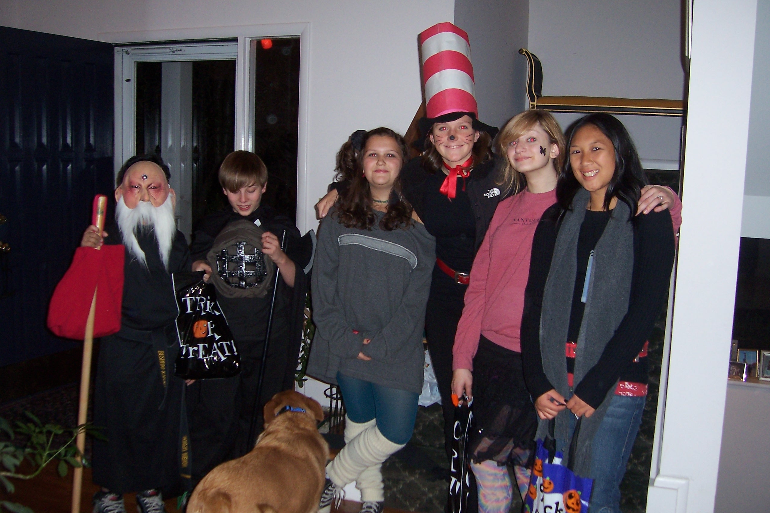 We Collens frequently chose group costumes: along with a Red Sox Team and a Celtic Team we also appeared as The Great Detectives and the cast of Gilligan’s Island. (Because Abigail was young enough, she thought the “Skipper” did a lot of skipping so she volunteered for that role.)