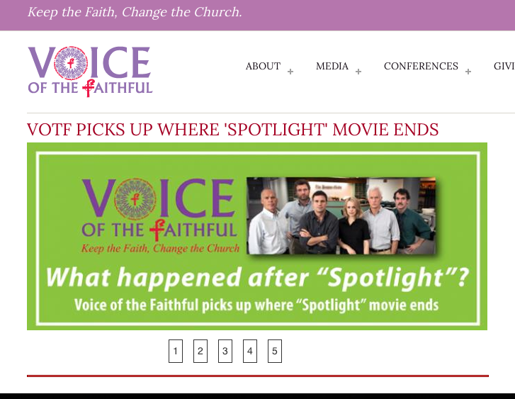 Reform groups continue to show this movie, incorporating it into a larger, continuing dialogue. Just recently the VOICE OF THE FAITHFUL group hosted a panel of the real reporters who broke the story. This group formed in Boston in response to the discovery of what Cardinal Law had done. Their mission continues to be “to pick up where the SPOTLIGHT movie ends.” VOTF. Future Church and CALL TO ACTION goad us to respond to this crisis and more fully participate in reforming our church by asking, now that we know this happened, “What will we do about it?”