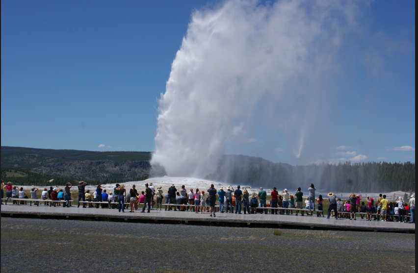 My first glimpse of Old Faithful was on that infamous cross country trip, a problematic idea (7 people cooped up in a camper for over a month) which I recall we actually truncated slightly because everyone just wanted to get home to a hot shower that did not involve wearing flip-flops or sudden bursts of cold water.