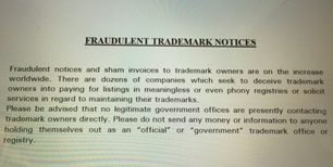 Devious shysters have always tried to make a quick buck, mailing fake invoices demanding payment for imaginary trademark protection services. In the U. S., before the Internet, when we caught these notices we turned them over to the U.S. Post Office for prosecution as mail fraud. The sharp increase of more and more official looking documents, containing pertinent information gleaned from official registers became noticeable once most countries’ Patent and Trademark Office data bases became publicly searchable and accessible.