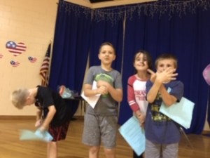 Next on the lineup of afternoon events — some theater! My lesson curriculum, (developed with the help, long ago, of that same third grade teacher Deb Chouinard) includes a short, two act play, introducing the characters from the origin story Enjella Uprooted; A Tooth Fairy Gets a New Job. What a lively group of future thespians I had the pleasure of directing! The children jumped into their roles and after only two, quick run-throughs, started improvising and pantomiming as they presented the skit to their classmates.