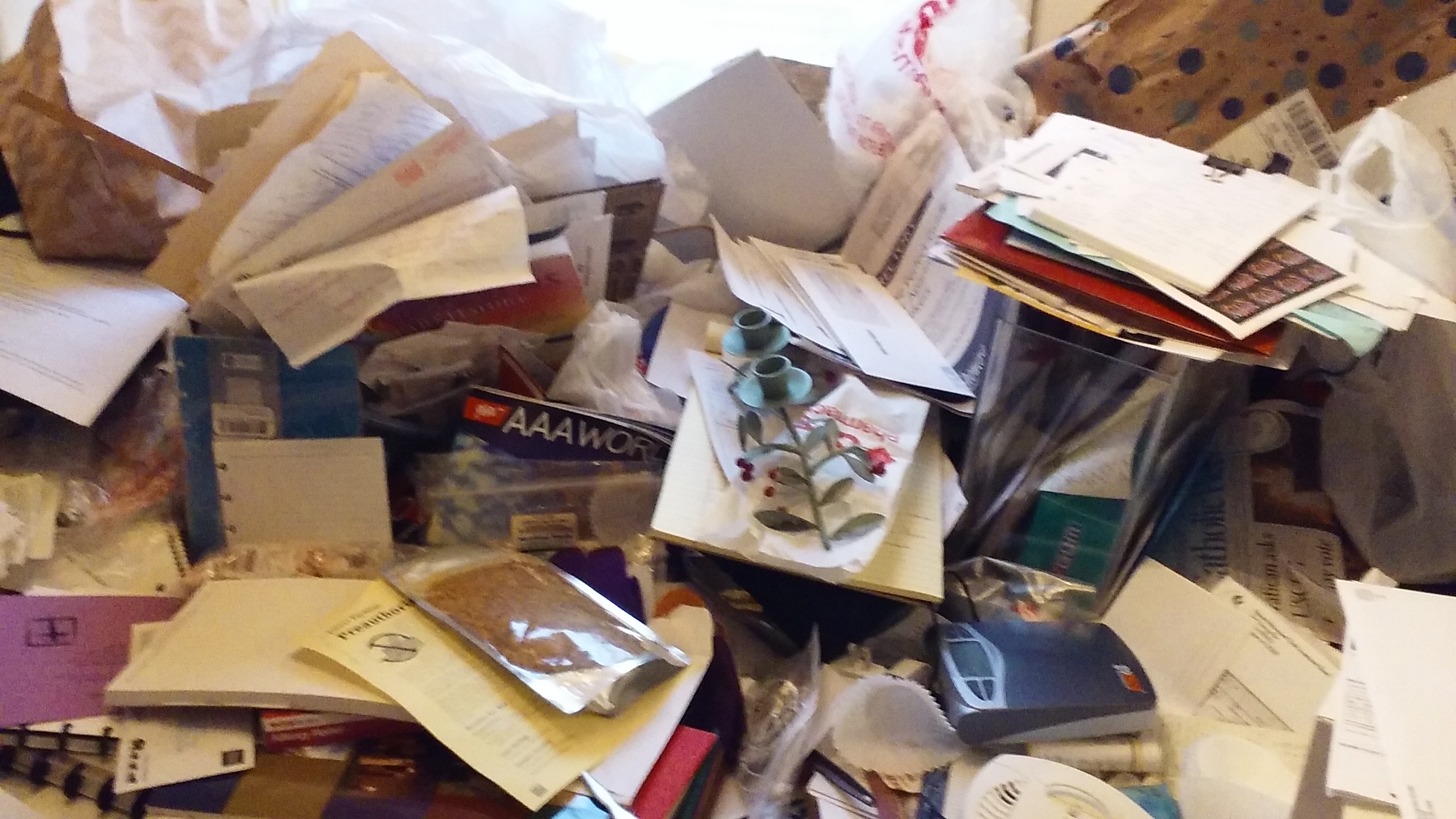 That’s how one friend described our other friend’s house. Patty had a neurological episode, similar to a stroke. When it became clear after hospitalization, surgery, and rehabilitation that she needed to move to be with her family, women from our circle stepped in to clear out her home. Yikes! To our dismay, the house was jam packed. Stuff was haphazardly stacked from floor to waist high, cabinet contents spilled onto counters, and even the bathtub overflowed. A mail-strewn path barely allowed access. A squad of friends pulled together to help clear her apartment and storage units.