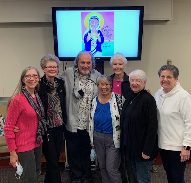 During the workshop, retreat leader Brother Mickey McGrath told stories using his prolific portfolio of artwork. The theme “Almost Home: Where Beauty and Justice Meet” featured saintly heroes, including Thomas Merton, Dorothy Day, and Thea Bowman. Brother Mickey’s presentation was interspersed with creative activities, so participants had opportunities to play with a bountiful selection of craft supplies.