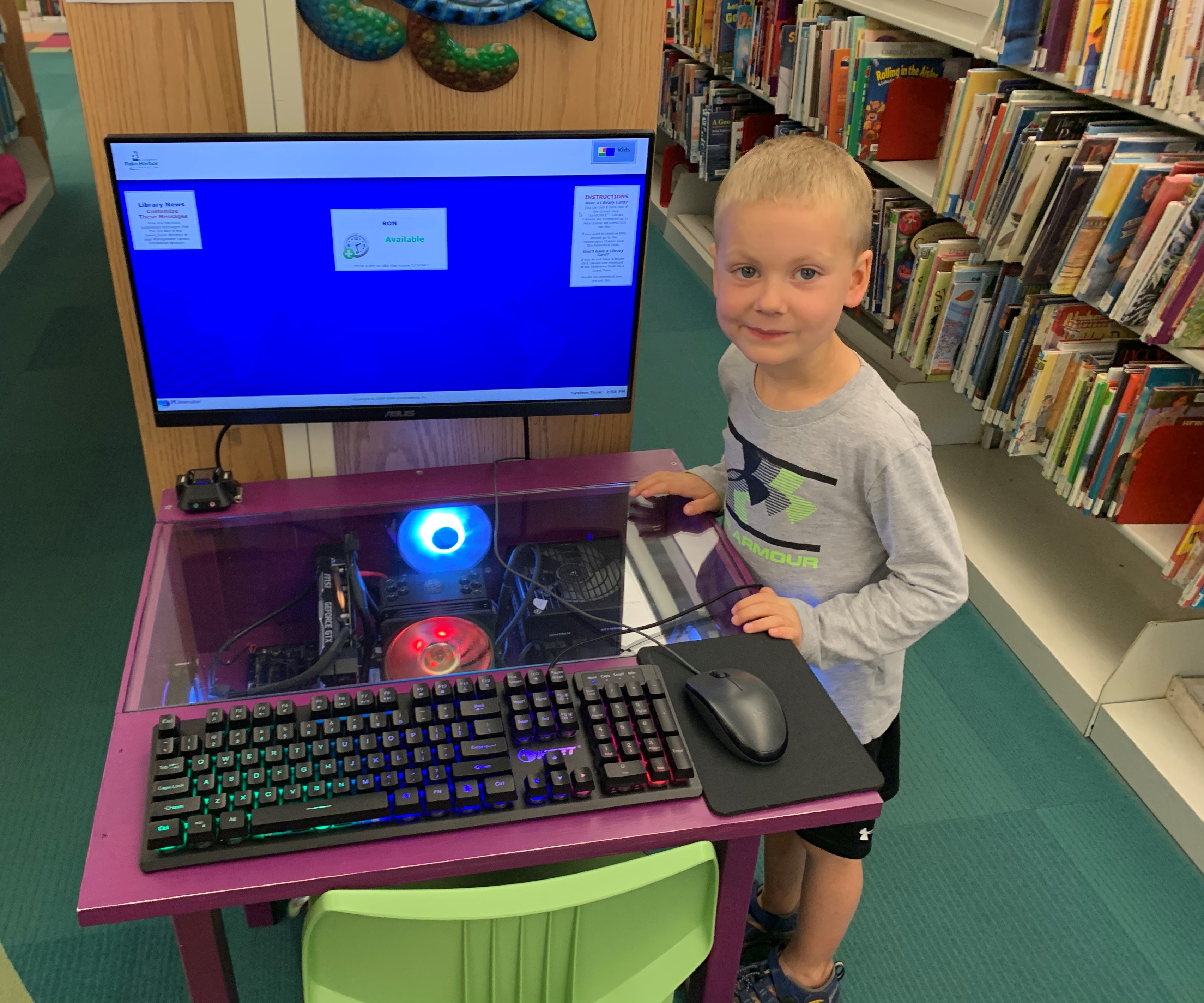 The library’s catalog has a plexiglass cover that lets you look at the computer’s innards