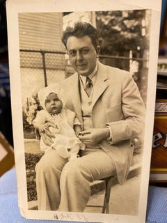 Back in 1927, when my five-month old mother (pictured left) attended the “orations” and the reading of the Declaration of Independence on the 4th of July, my grandfather (and grandmother -taking the picture) were dressed to the nines. (An expression around since before 1850 – Wikipedia says it originated in Scotland, and means ‘to perfection’, but other references suggest the phrase derives from high fashion dresses using at least nine yards of fabric.)