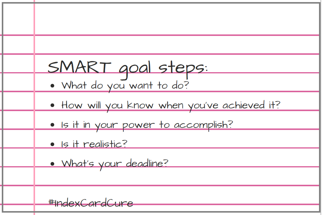 Here’s a secret to goal achievement success — Schedule time on the calendar for your task. Don’t just put your goal on a to do list. Whether it’s taking a 15-minute walk to increase your endurance or running through a five exercise weight lifting sequence to get stronger, mark the time commitment on a calendar, like you would a doctor appointment. If you really want to accomplish something, designate a block of time and make it a recurring commitment. Whatever the goal is, figure out and list the underlying steps. Start with one baby step goal — something that’s small enough so you’re not overwhelmed, freaked out, or discouraged. Pace yourself. It takes a lot of training miles before you can run and finish a marathon. Even if you have multiple goals, work on one thing at a time. Thinking about simultaneously organizing the basement, garage, and attic will overpower the best of intentions. Set yourself up for success.