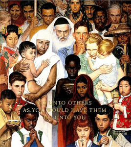“I’d been reading up on comparative religion. The thing is that all major religions have the Golden Rule in Common. ‘Do unto others as you would have them do unto you.’ Not always the same words but the same meaning.” Norman Rockwell, The Norman Rockwell Album