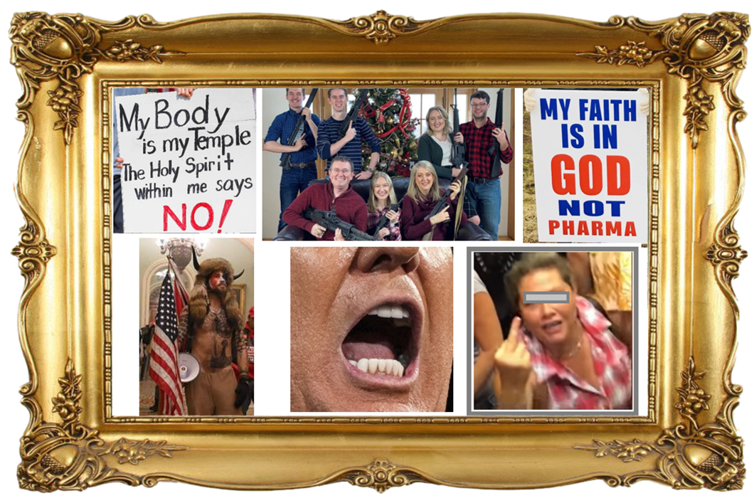 • “Patriots” breaching the halls of democracy and assaulting police officers with flagpoles — including the American flag — and bear spray.